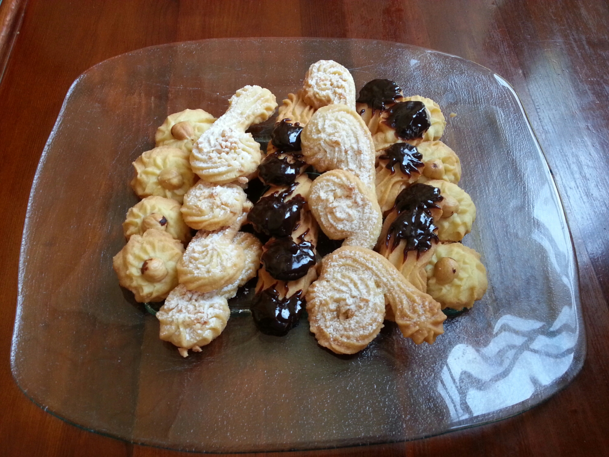 Formar con boquilla rizada. Poner almendras o avellanas, nueces.