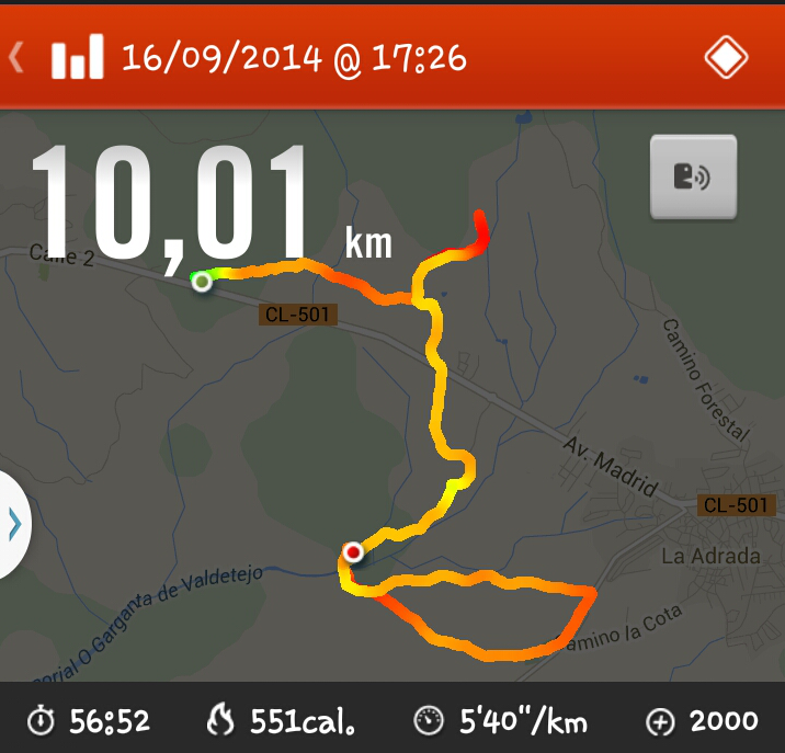Del km 1 al 2 en perfecto estado, pero empece a subir la montaña de este valle, una cuesta conocida, pero como es logico te hace perder ritmo; asi hasta el km 3.5 que ya tocaba recuperar bajando hasta el 4.5 y mantener un buen ritmo hasta el 8! Iba bien, pero parece que tus piernas quieren hablar llegado este punto, pero no les hice ni caso, la cabeza estaba chillandome: ya lo tienes echo y corres por un equipo, CON UN OBJETIVO