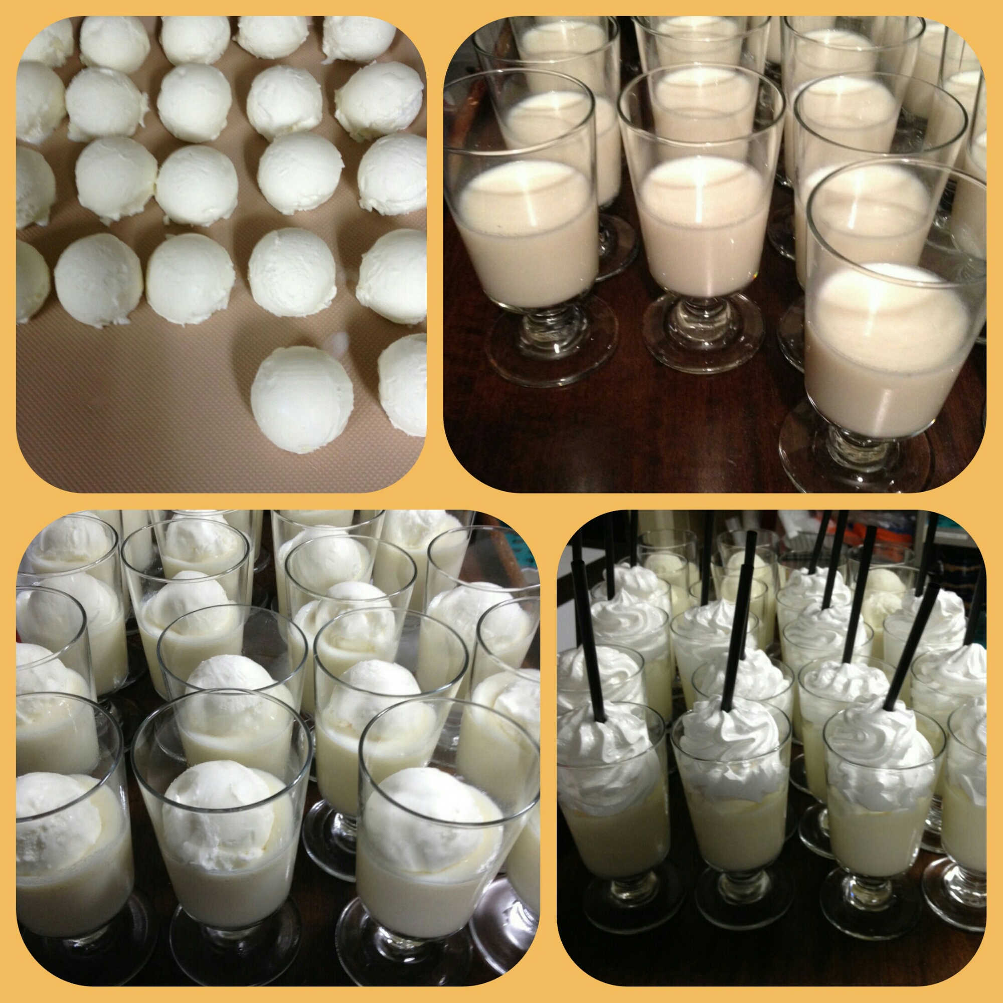En la copa pondremos la gelatina de leche merengada, una bola de helado de leche merengada y por último el merengue americano.