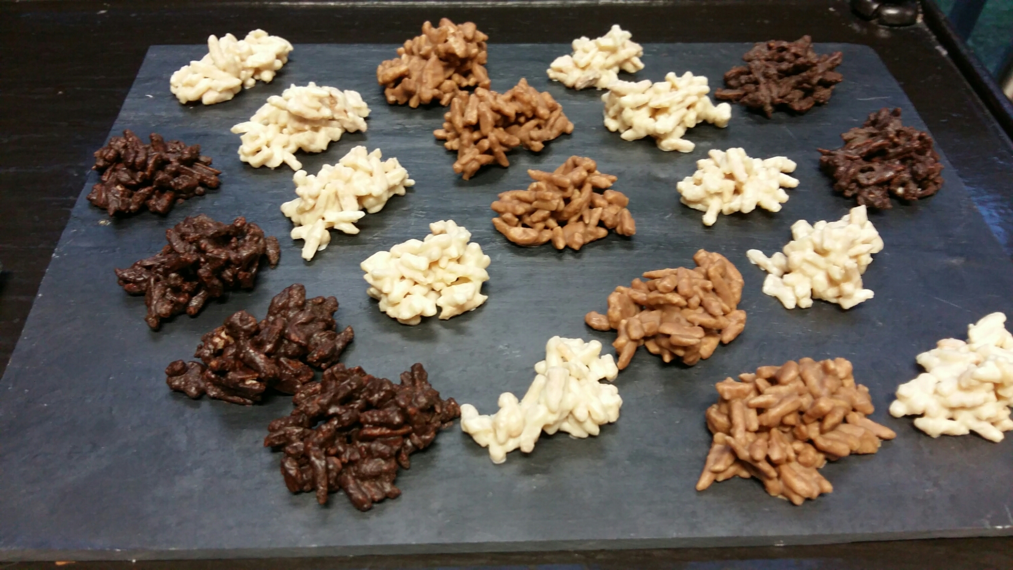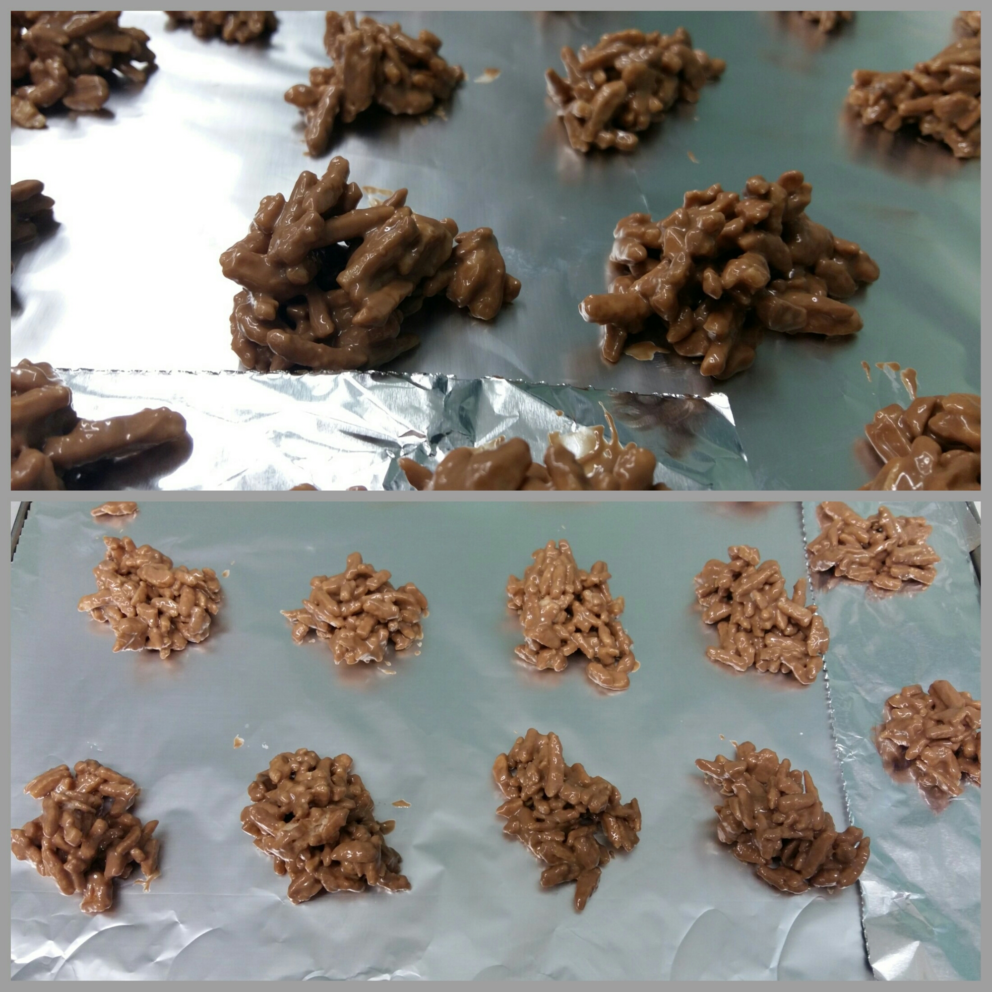 Podemos estirar una placa y cuando se cristalice lo partimos de tamaños irregulares o también lo podemos colocar con dos cucharas haciendo montoncitos. .. Según el uso que le vayamos a dar.