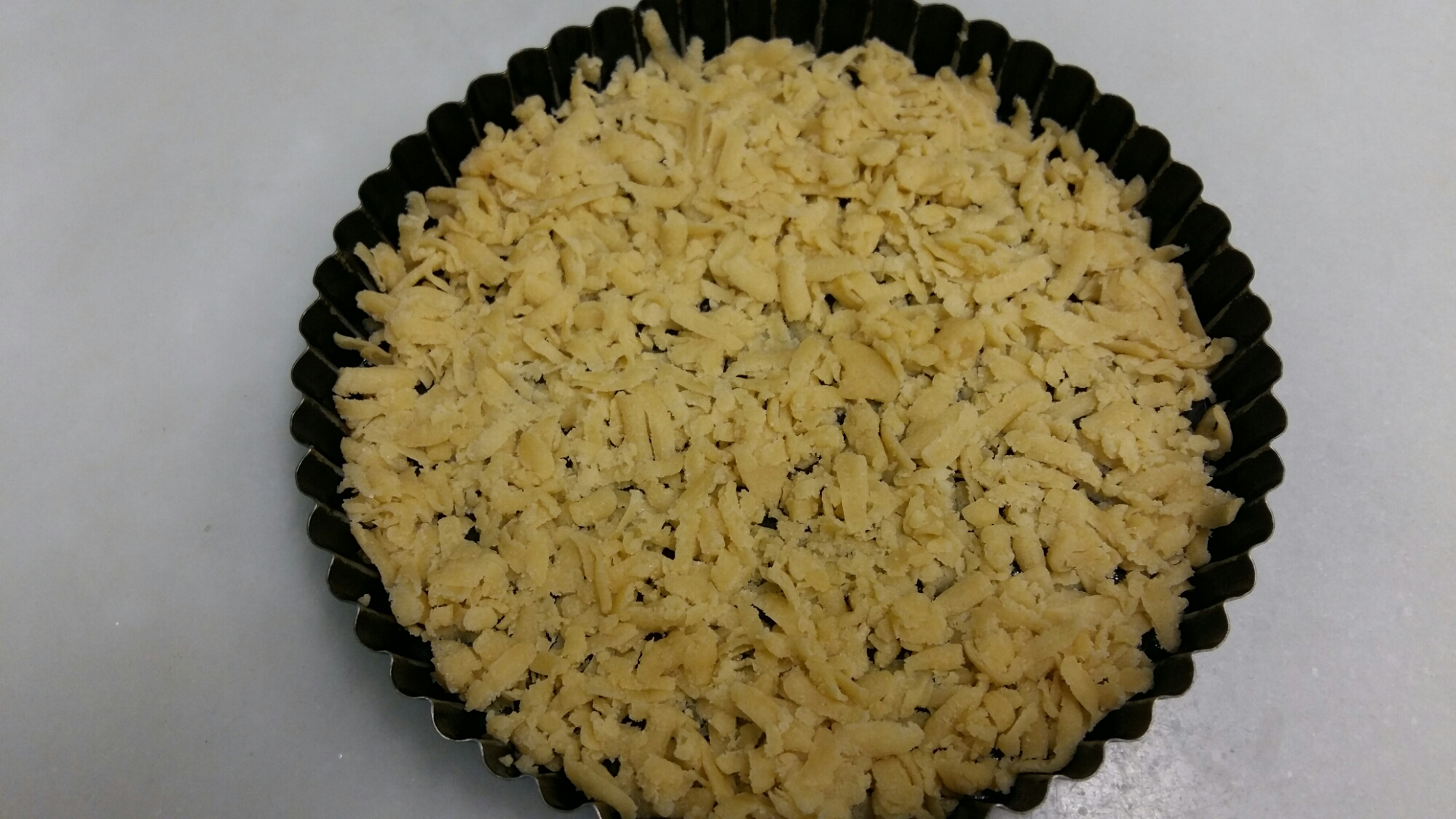 Se puede poner con una base de galleta streussel hecha con anterioridad. Esta galleta soluciona unos papelones…tanto para base de tartas que ahora se lleva muchisimo como para decoraciones.