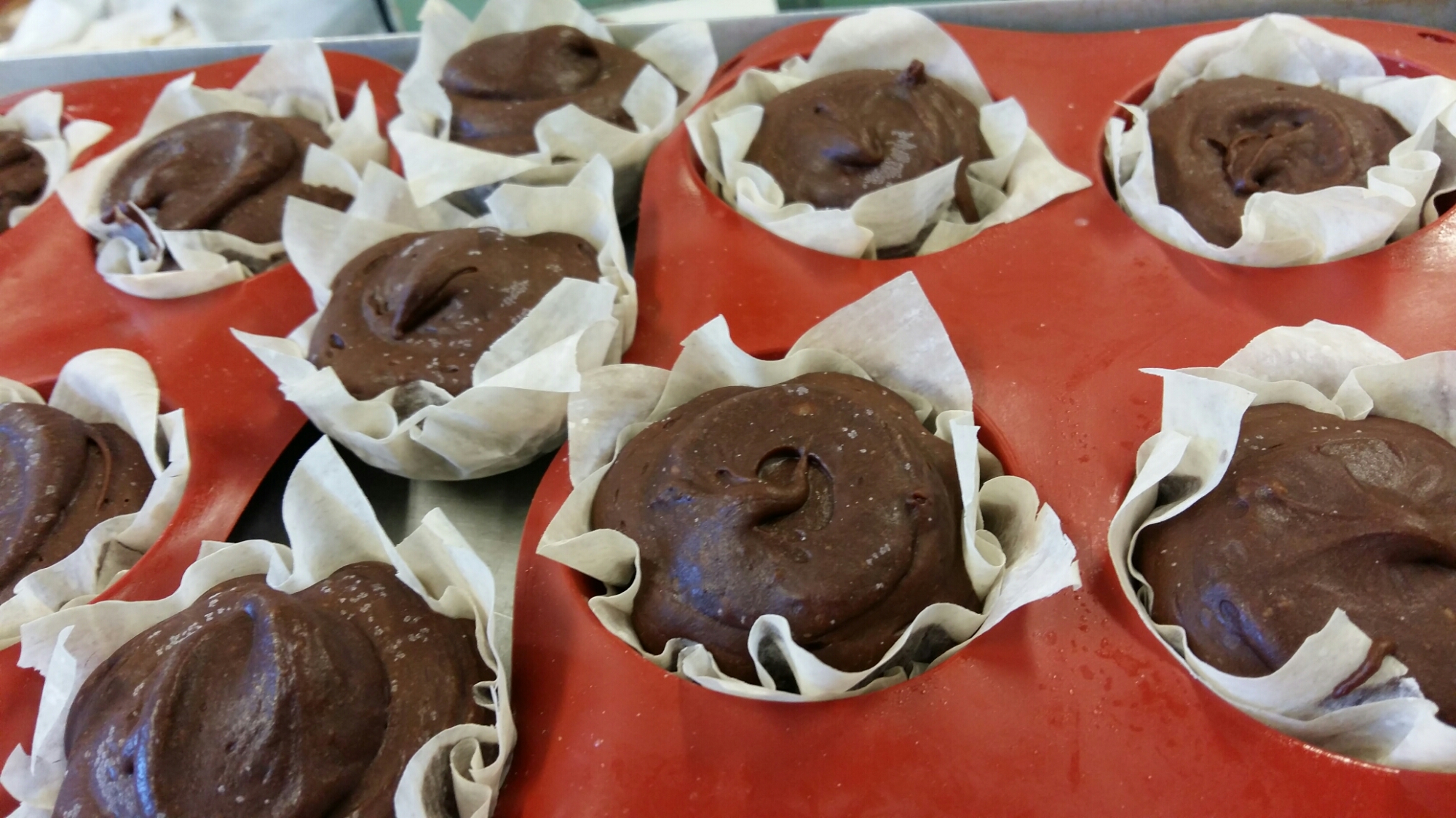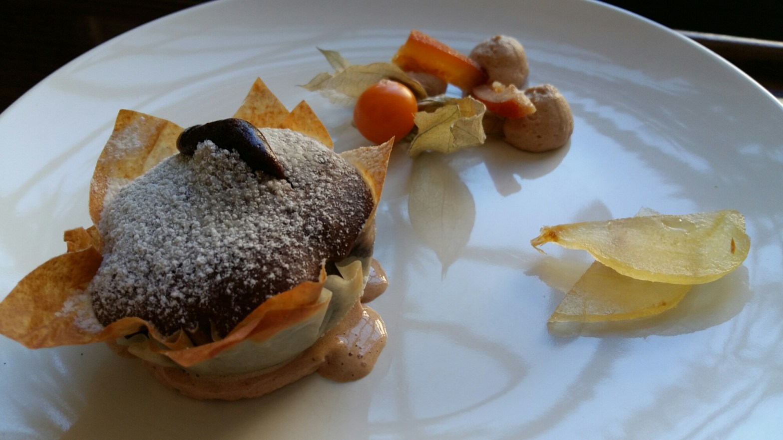Derretimos el chocolate y la mantequilla en el microondas. Batimos los huevos junto con las yemas y el azúcar. Añadimos la mezcla anterior y por ultimo la harina.