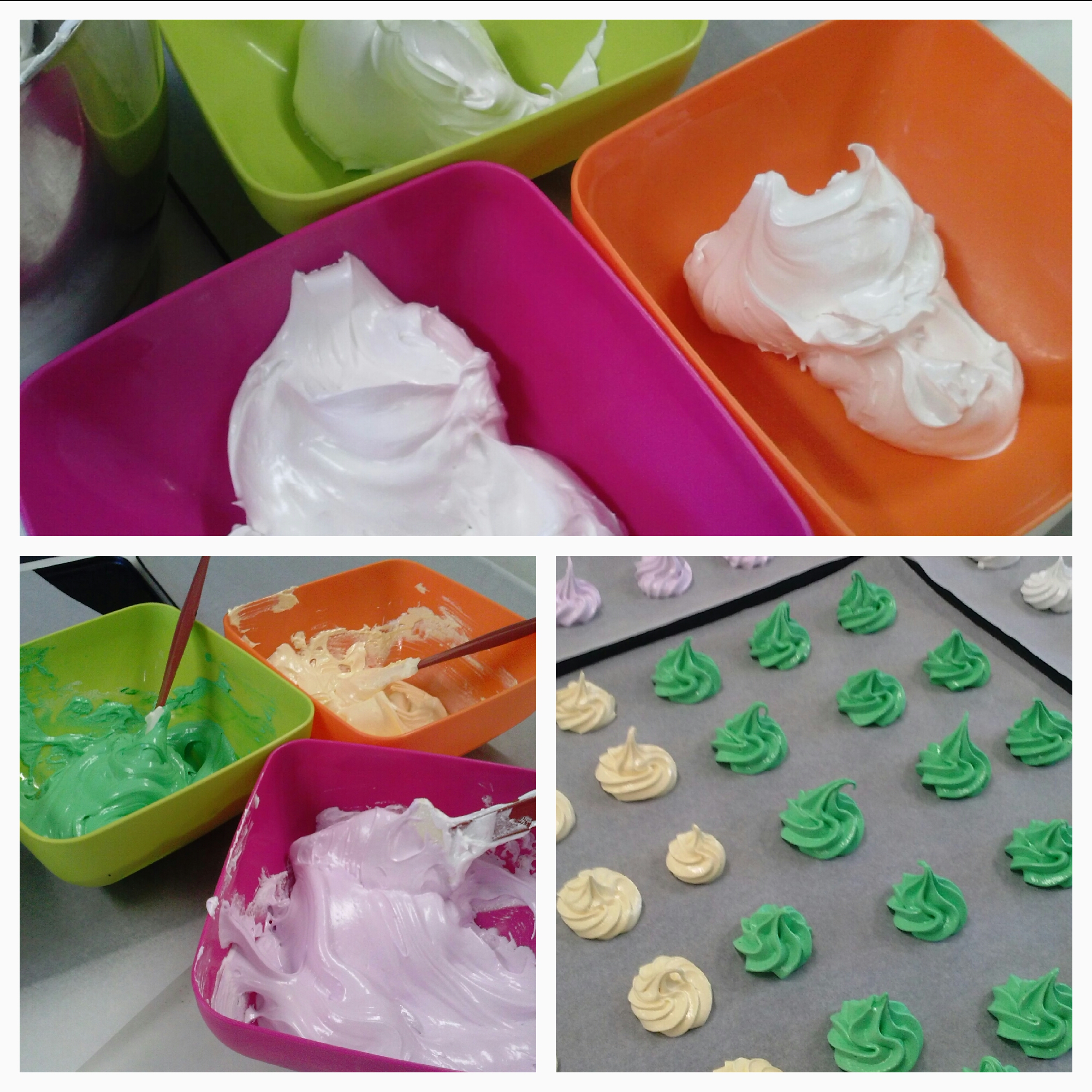 Según la utilidad que les vayamos a dar podemos teñir el merengue de colores, ponerle toppings encima antes de meterlos en el horno….y darles la forma que deseemos con la manga pastelera.