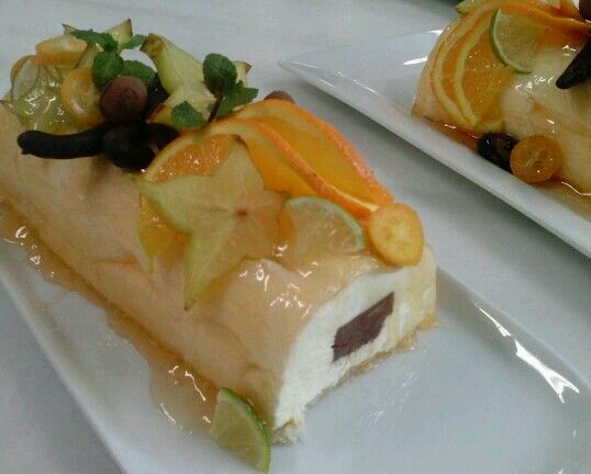 Mousse de naranja y núcleo de chocolate