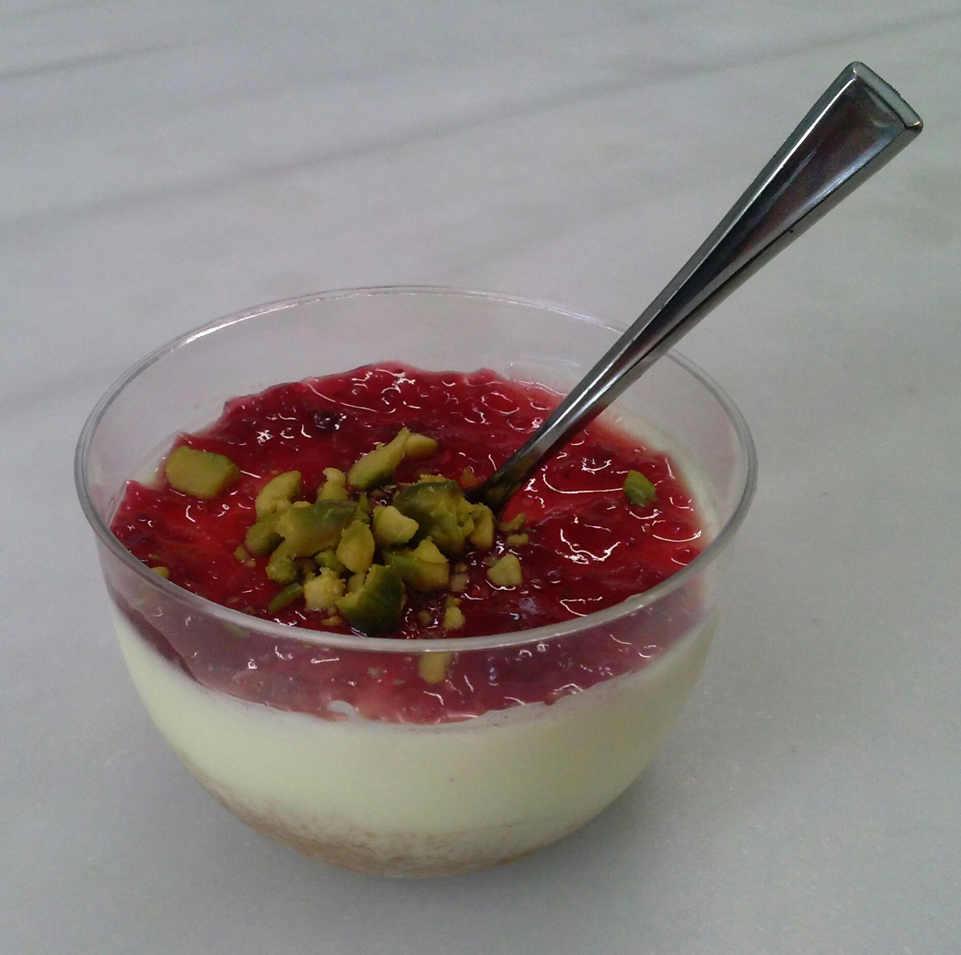 En este caso, he decorado el vasito de cheesecake con pistacho troceado.