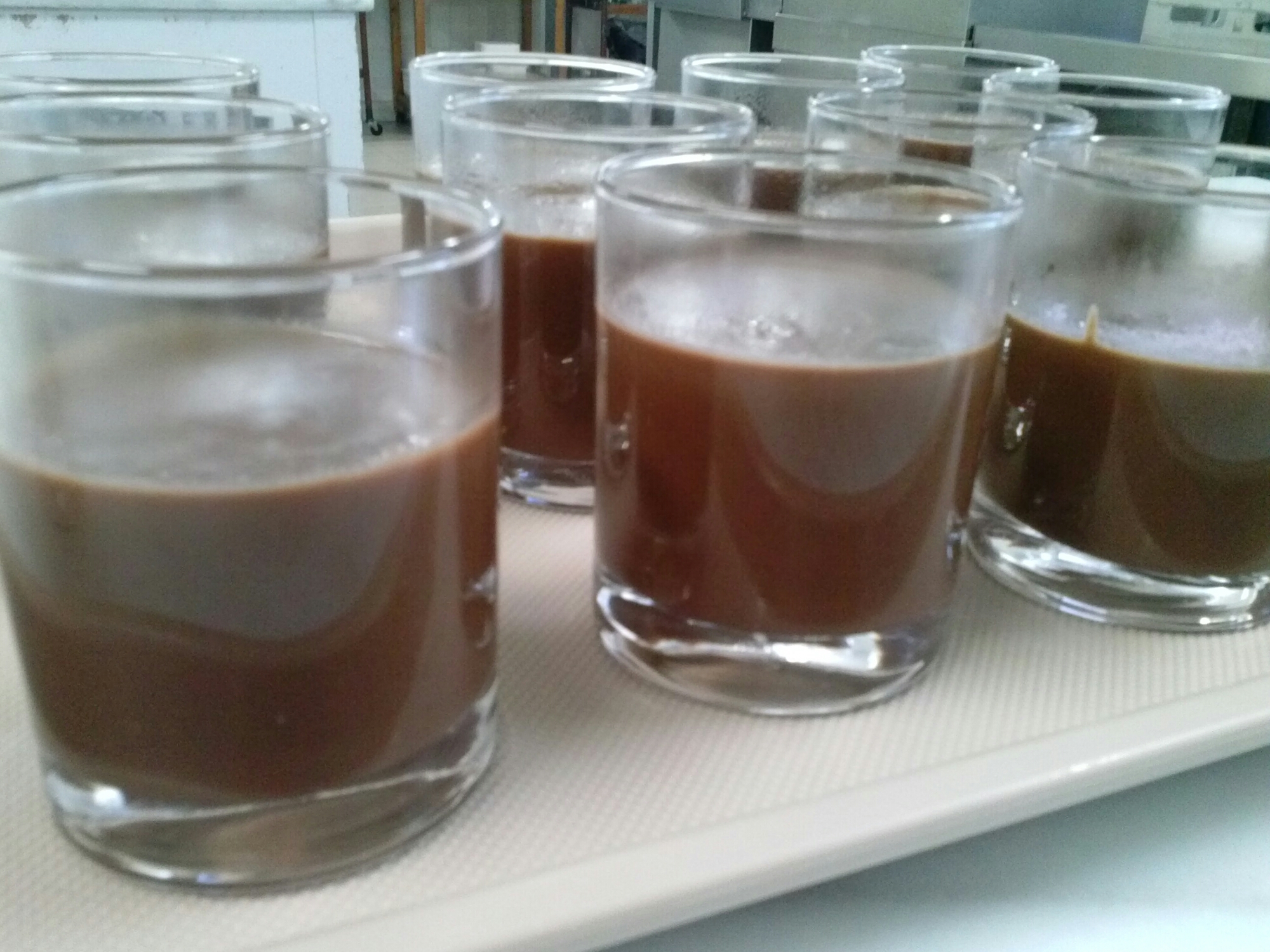 Dejamos enfríar un poco y rellenamos nuestros vasos de presentación dejando un espacio para luego añadir la espuma. Dejamos que cuaje durante al menos una hora y media. Conservamos en nevera.