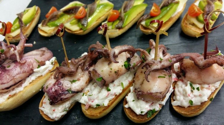Tapa de aguacate, cherry, anchoa y mahonesa.