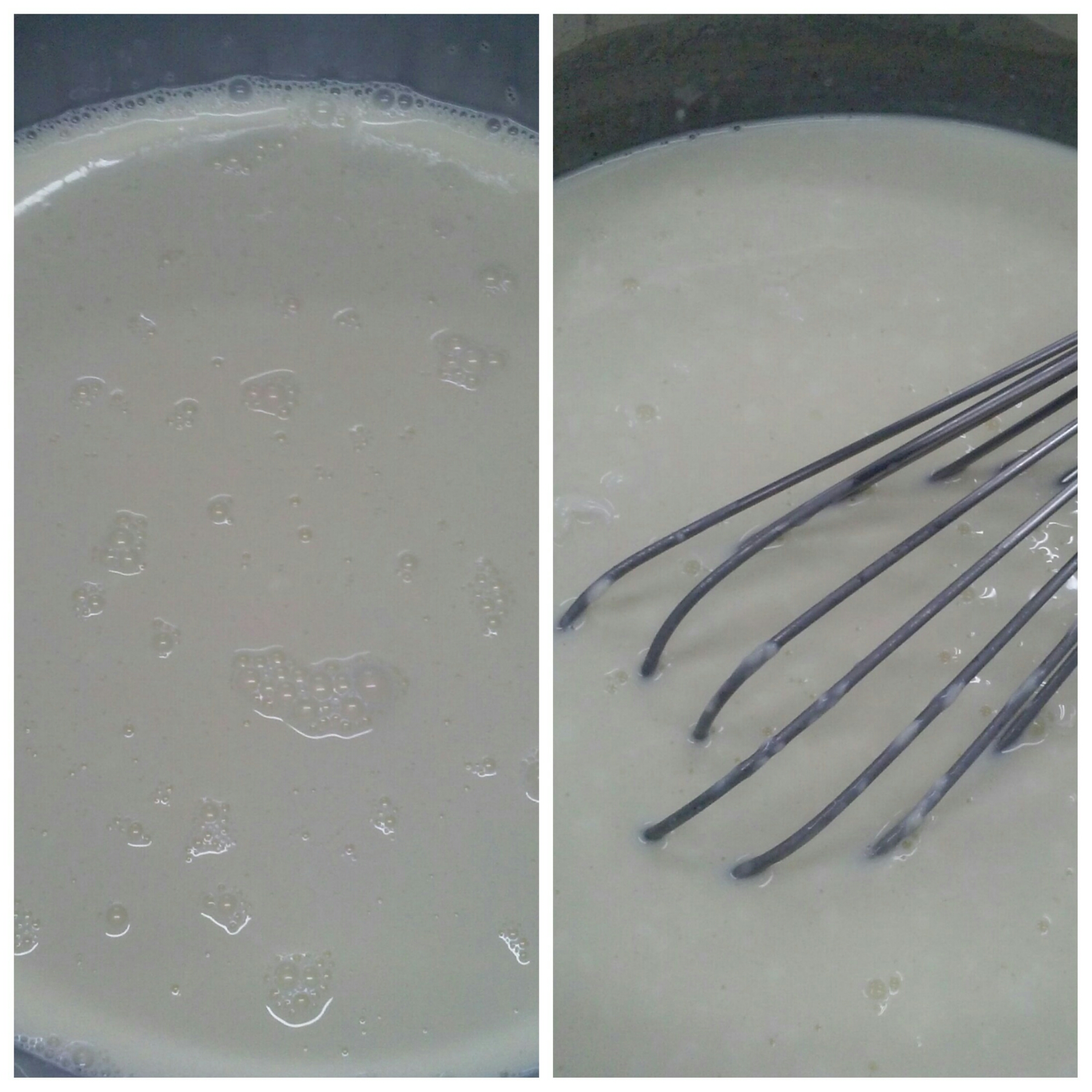 En un cazo calentar la leche con el azúcar y disolver la gelatina cuando esté totalmente hidratada.