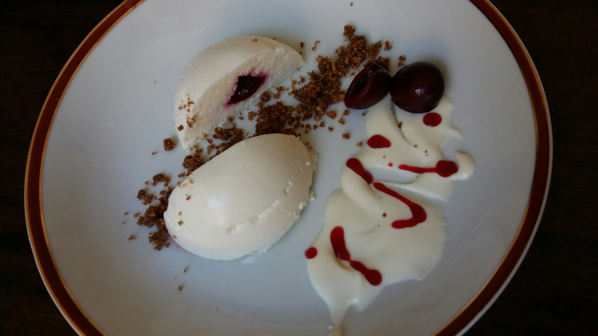 Añadir a esta mezcla el yogur natural y la nata semimontada con movimientos envolventes. Verter un poco de la mezcla en los moldes de semiesfera, colocar el núcleo de cereza y acabar de rellenar con otro poco de mousse de yogur. Congelar