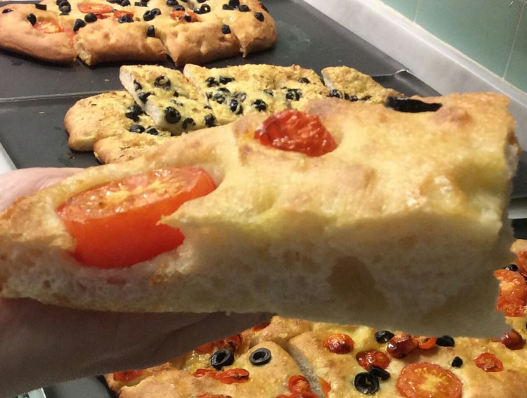 Esta receta me ha gustado especialmente, normalmente quedaba un poco defraudada en la textura de las foccacia, hasta llegar a pensar que serian asi (un tanto secas y poco esponjosas)…se me rompieron los esquemas con esta receta!