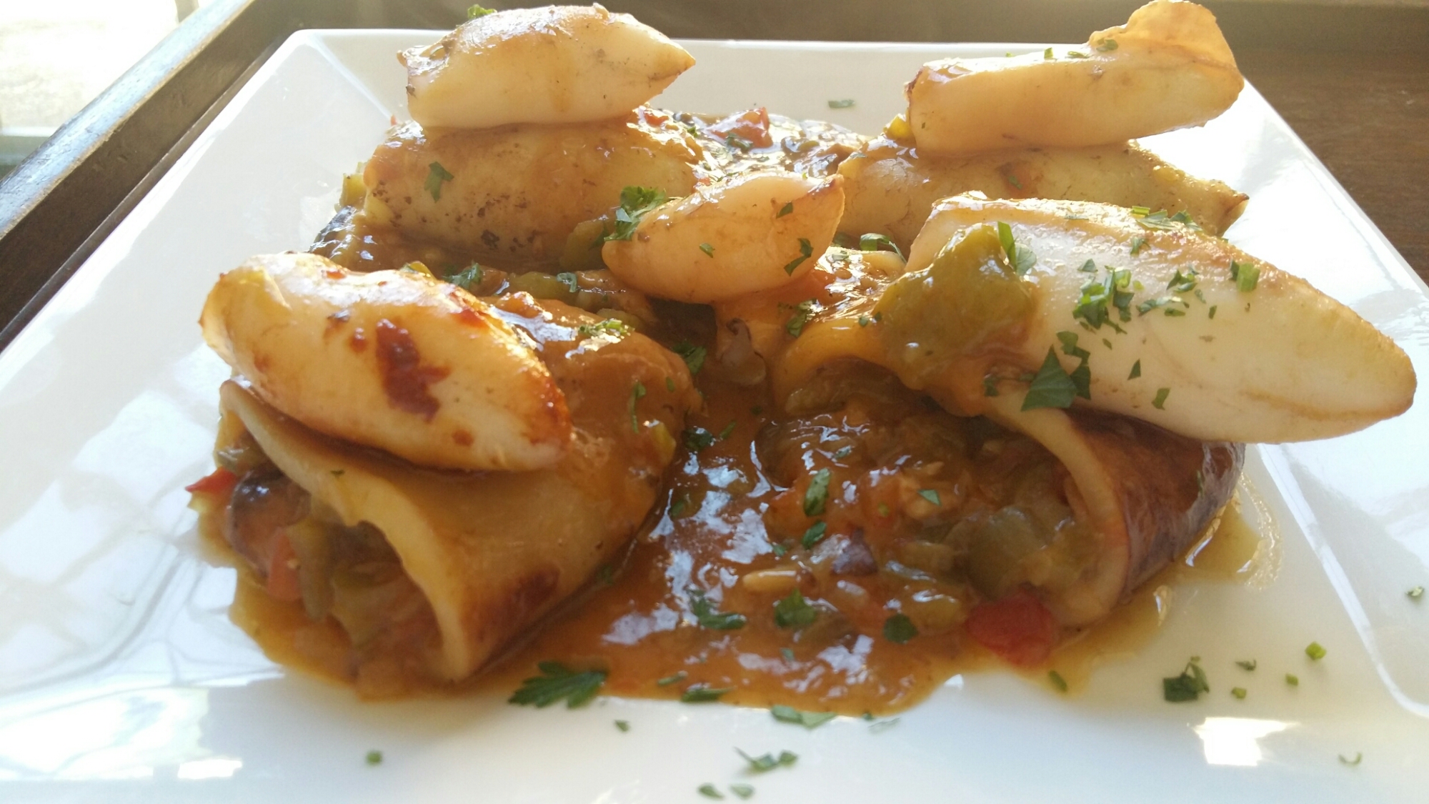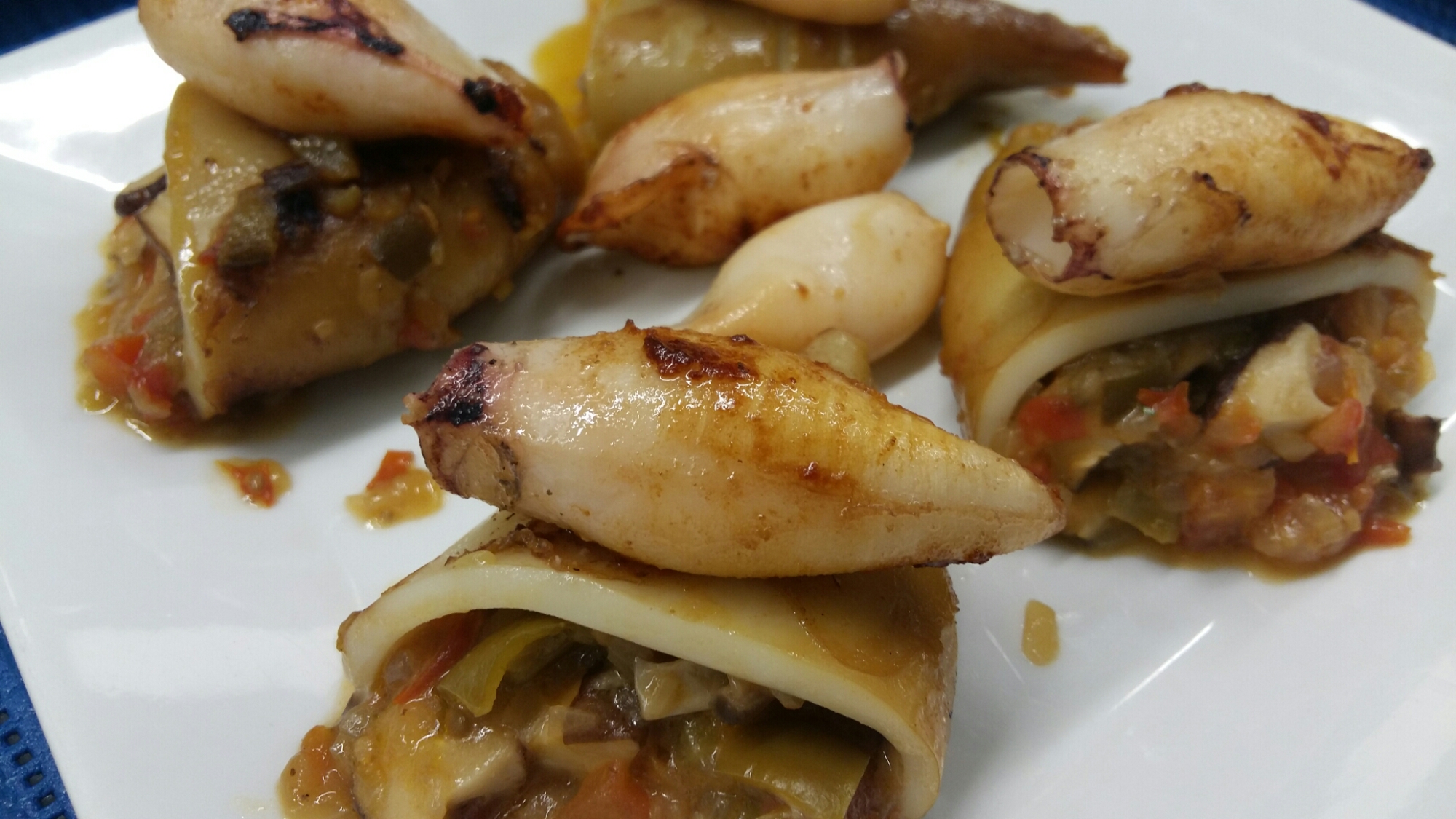 También se puede presentar poniendo en cada calamar un fondo de setas laminadas y salteadas.