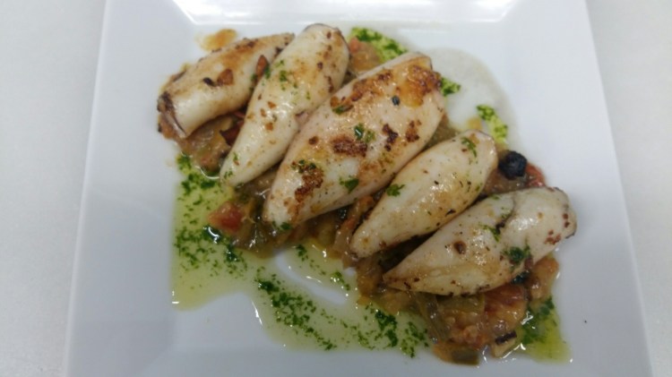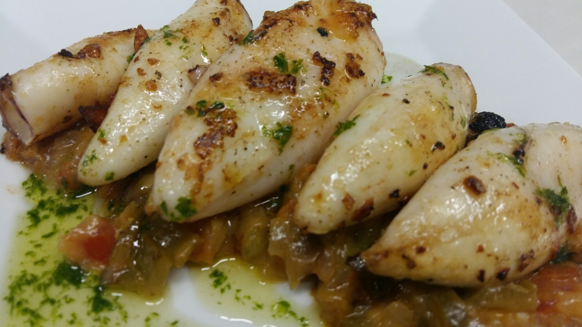 Hemos decorado también con chipirones. Los hacemos en la plancha.