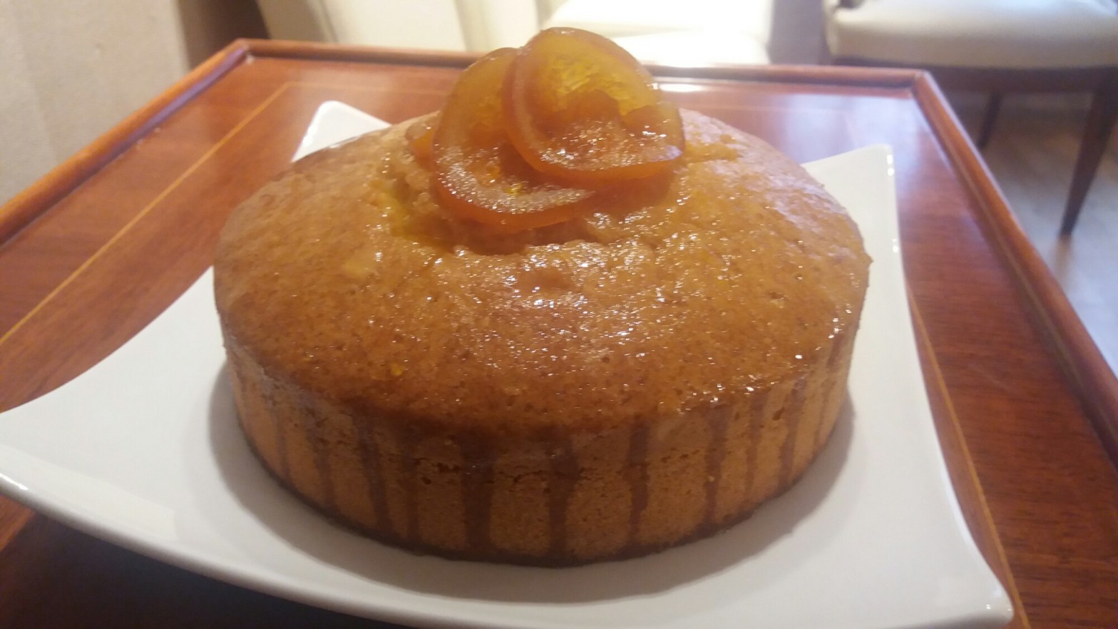 Una vez está hecho el bizcocho lo desmoldamos y con un pincel iremos bañandolo del almíbar de naranja varias veces. Es recomendable hacer este paso cuando el bizcocho está aún caliente para que absorba el almíbar aportando sabor, esponjosidad y frescura al bizcocho.