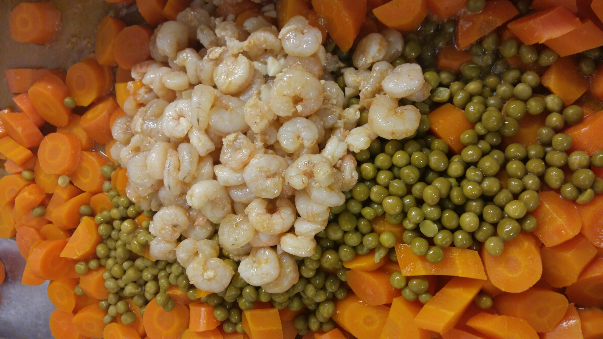 Una vez tenemos estos ingredientes los juntamos, ponemos en el fondo de la fuente y añadimos los calabacines.