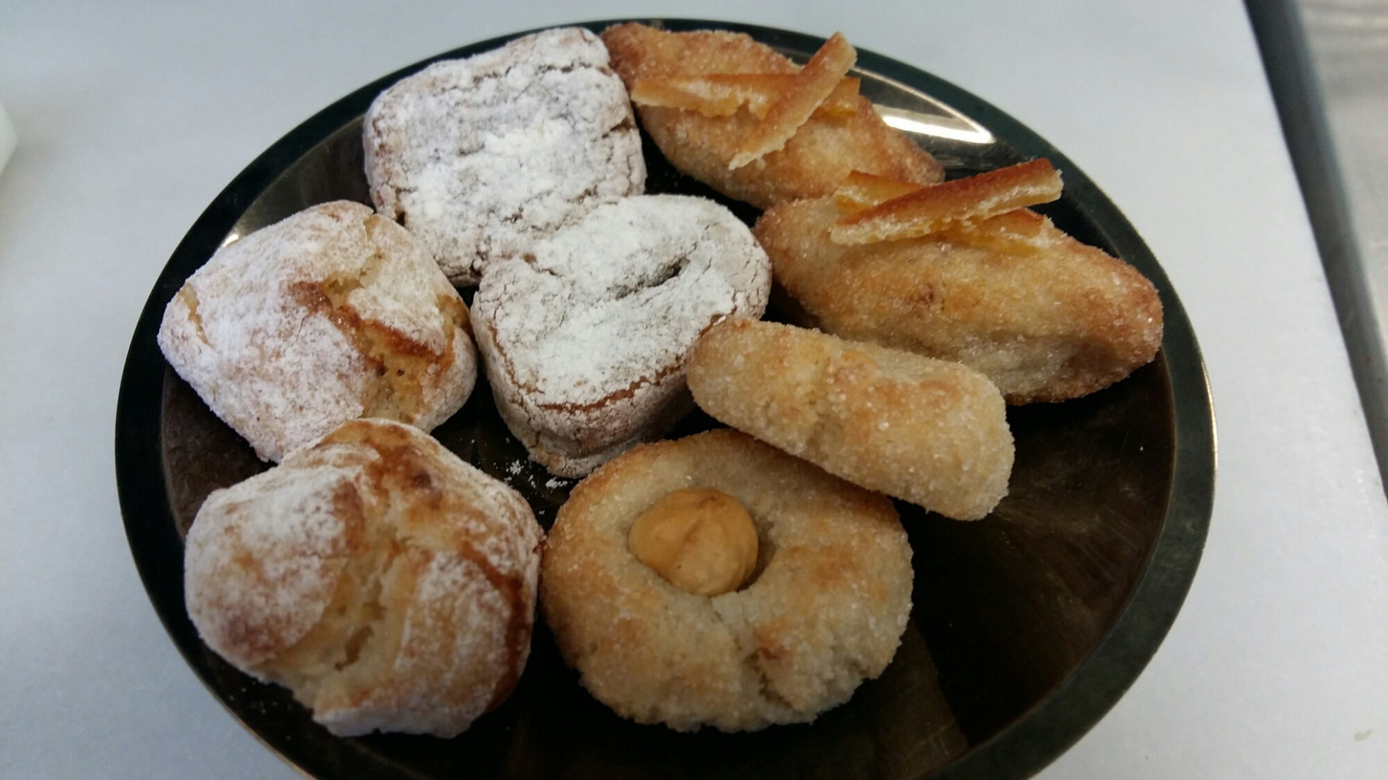 Rebozadas con azúcar granillo las porciones hemos realizado de naranja confitada y avellana.