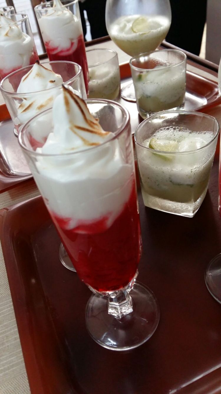 Volcamos en el vaso. Ponemos por encima el merengue y lo quemamos un poco con un soplete. Si no tienes se puede quemar con el mechero largo de la cocina. Servir con pajita y a disfrutar😊