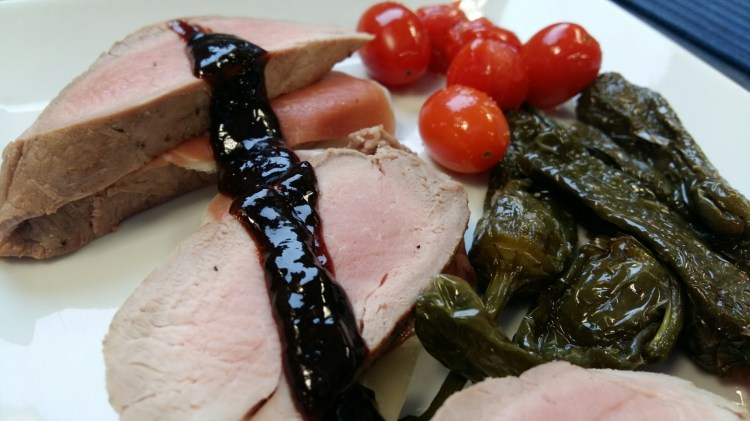 La guarnición puede ser muy variada, los tomates cherrys al horno (aproximadamente 2 minutos) y los pimientos de padrón fritos a fuego no muy alto.