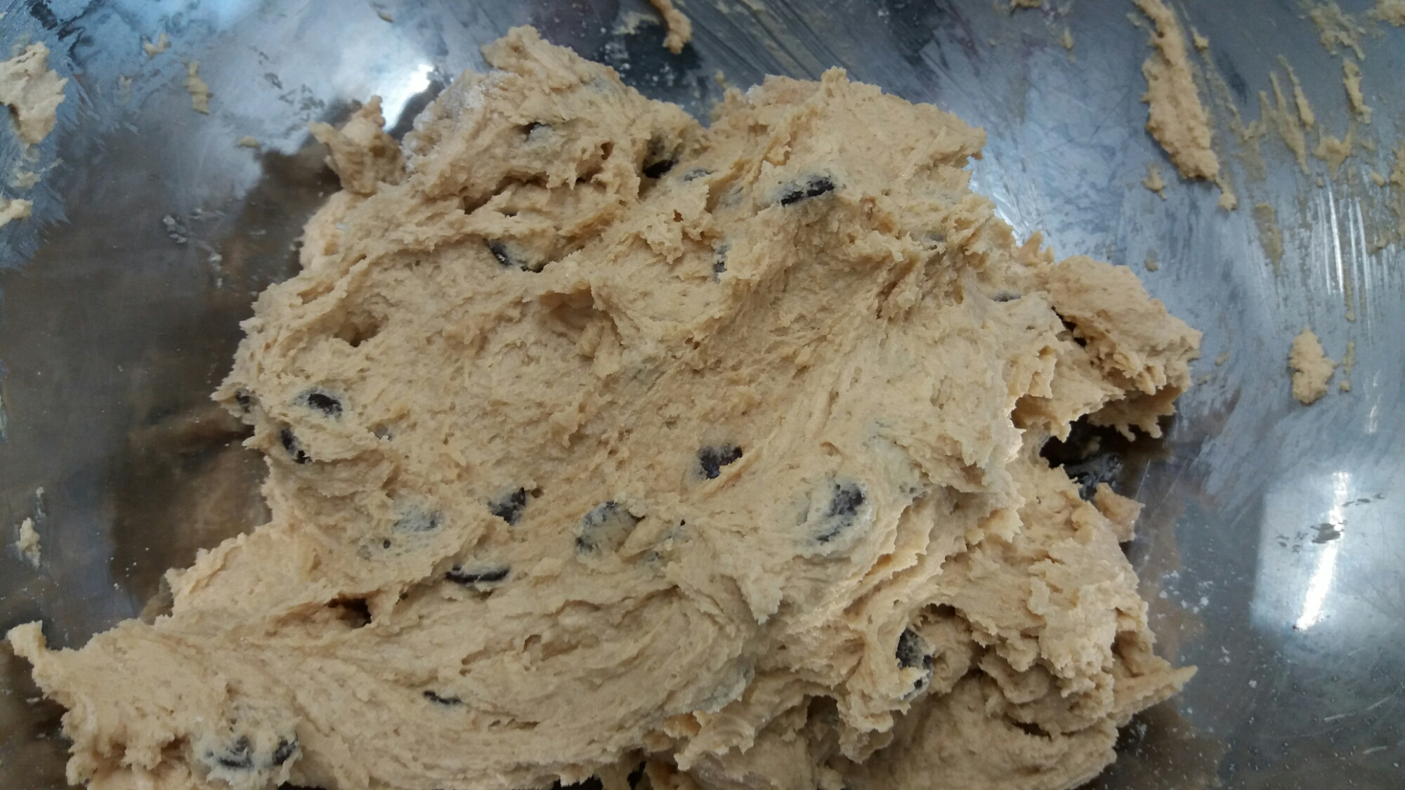 Batimos la mantequilla con los dos tipos de azúcar hasta que se integren. Incorporamos el huevo y la vainilla y batimos de nuevo. Finalmente, añadimos la harina tamizada con el bicarbonato. Incorporamos los chips de chocolate negro. Refrigeramos media hora.