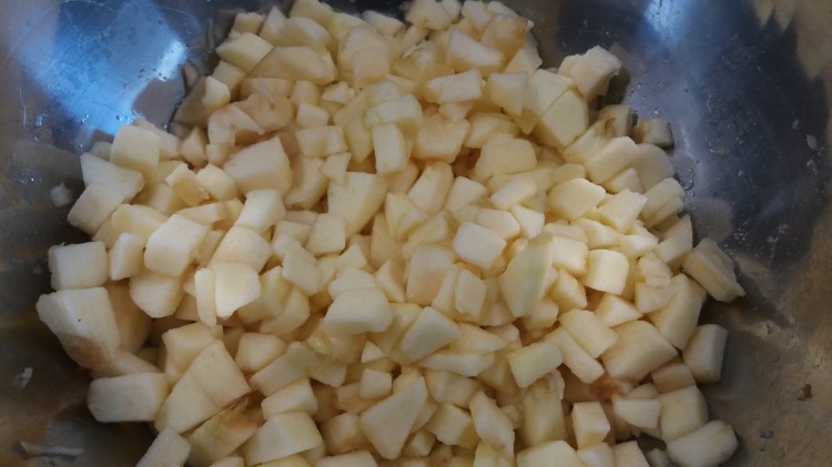 Pelar y cortar las manzanas en dados. Mezclarlas con el zumo de limón.