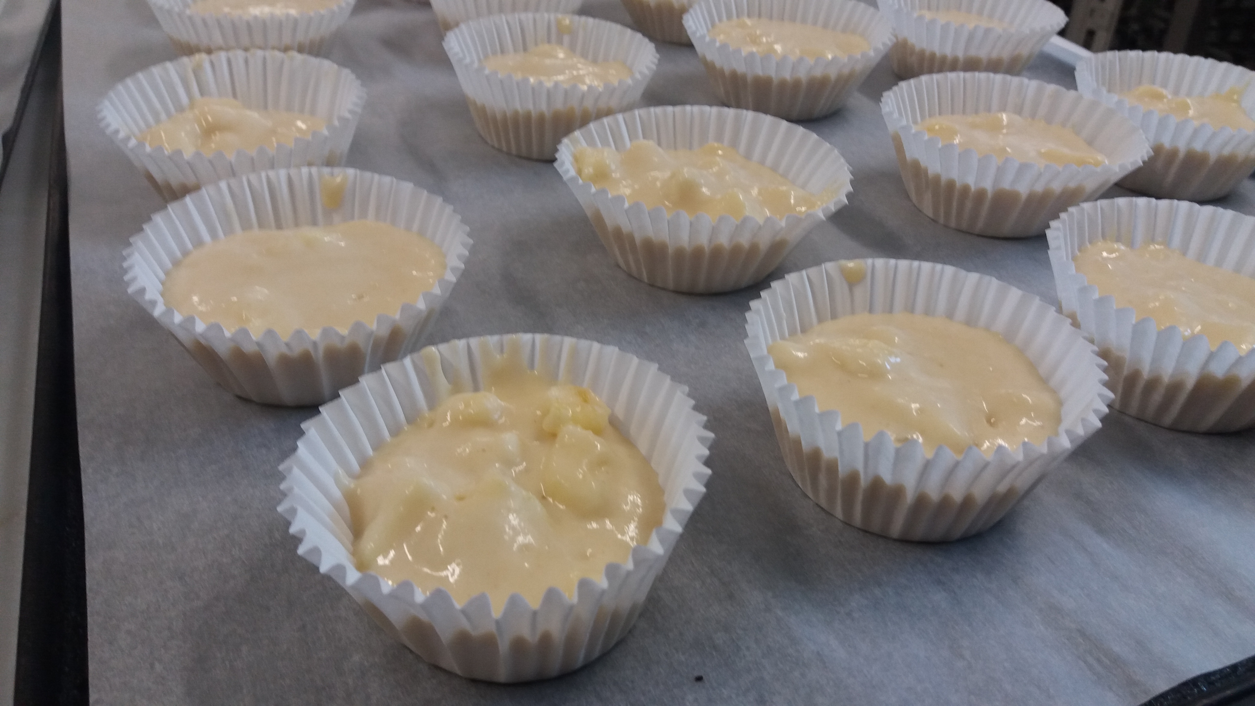 Incorporar a la mezcla de harina y rellenar los moldes.
