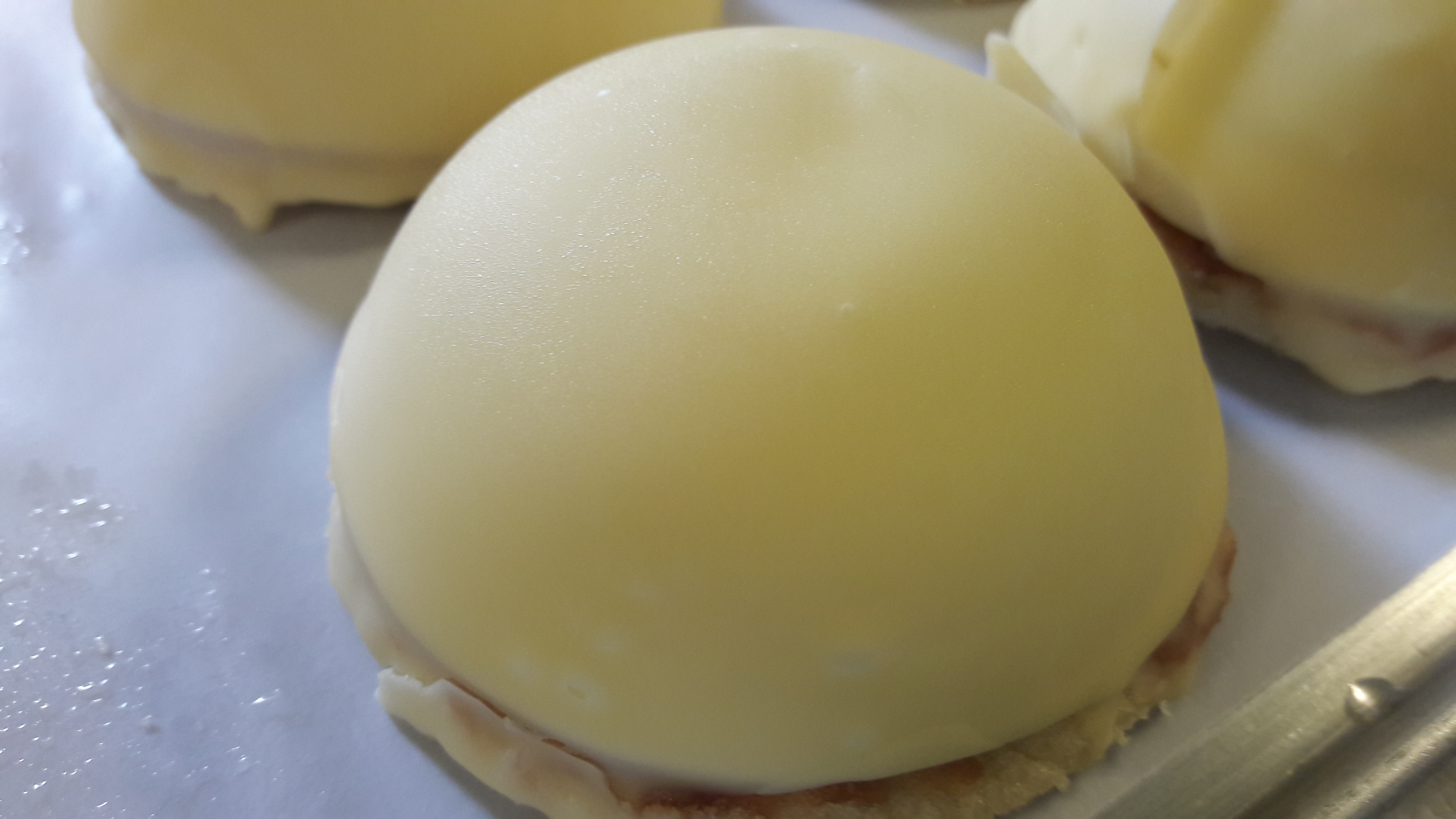 Fundir la manteca de cacao con el chocolate blanco. Añadir si se quiere el colorante. Esperar a que pierda temperatura y poner sobre las esferas.