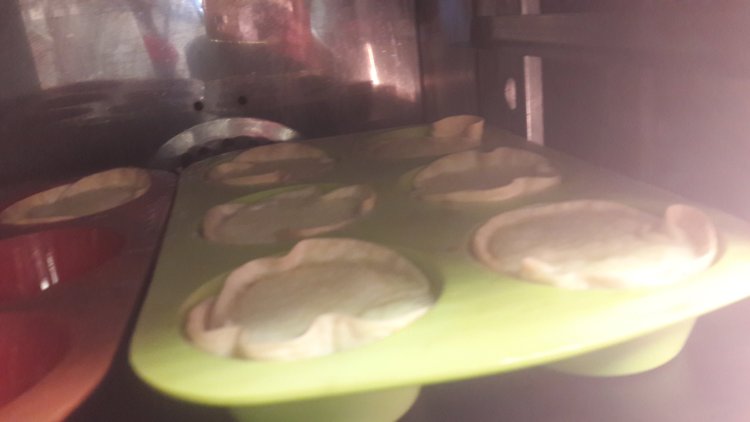 Triturar todo y ponerlo sobre los moldes forrados con hojaldre o como en este caso con la masa de las empanadillas.