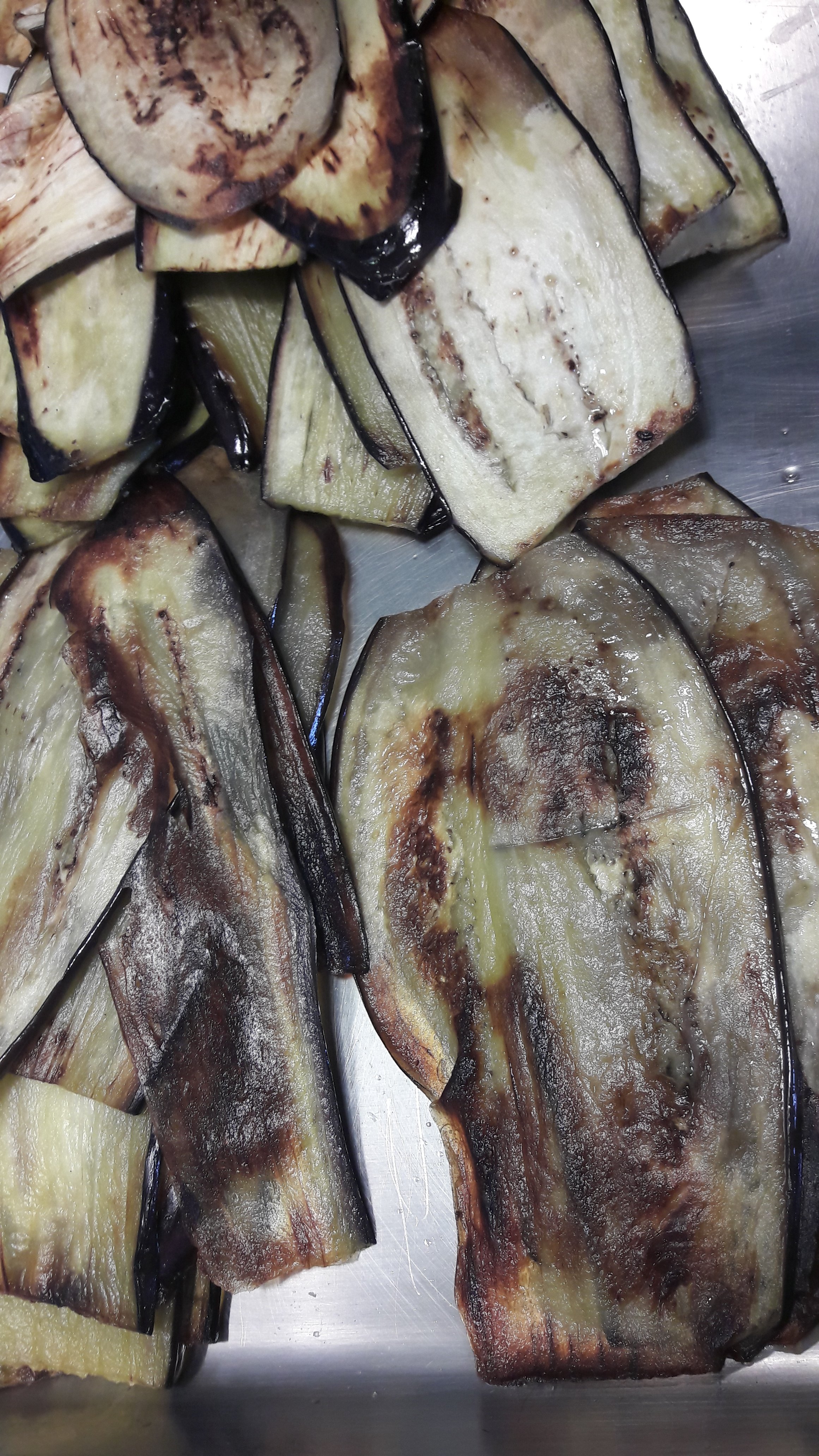Escurrimos y secamos bien las berenjenas y las cocemos en una plancha o sartén.