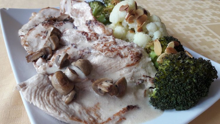 Servir las pechugas cubiertas con salsa.