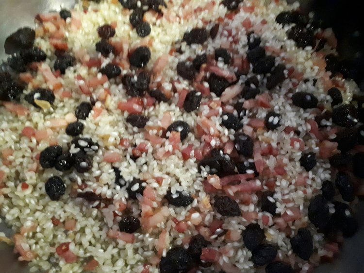 El refrito lo he hecho como me aconsejo: ajito, beicon y pasas!