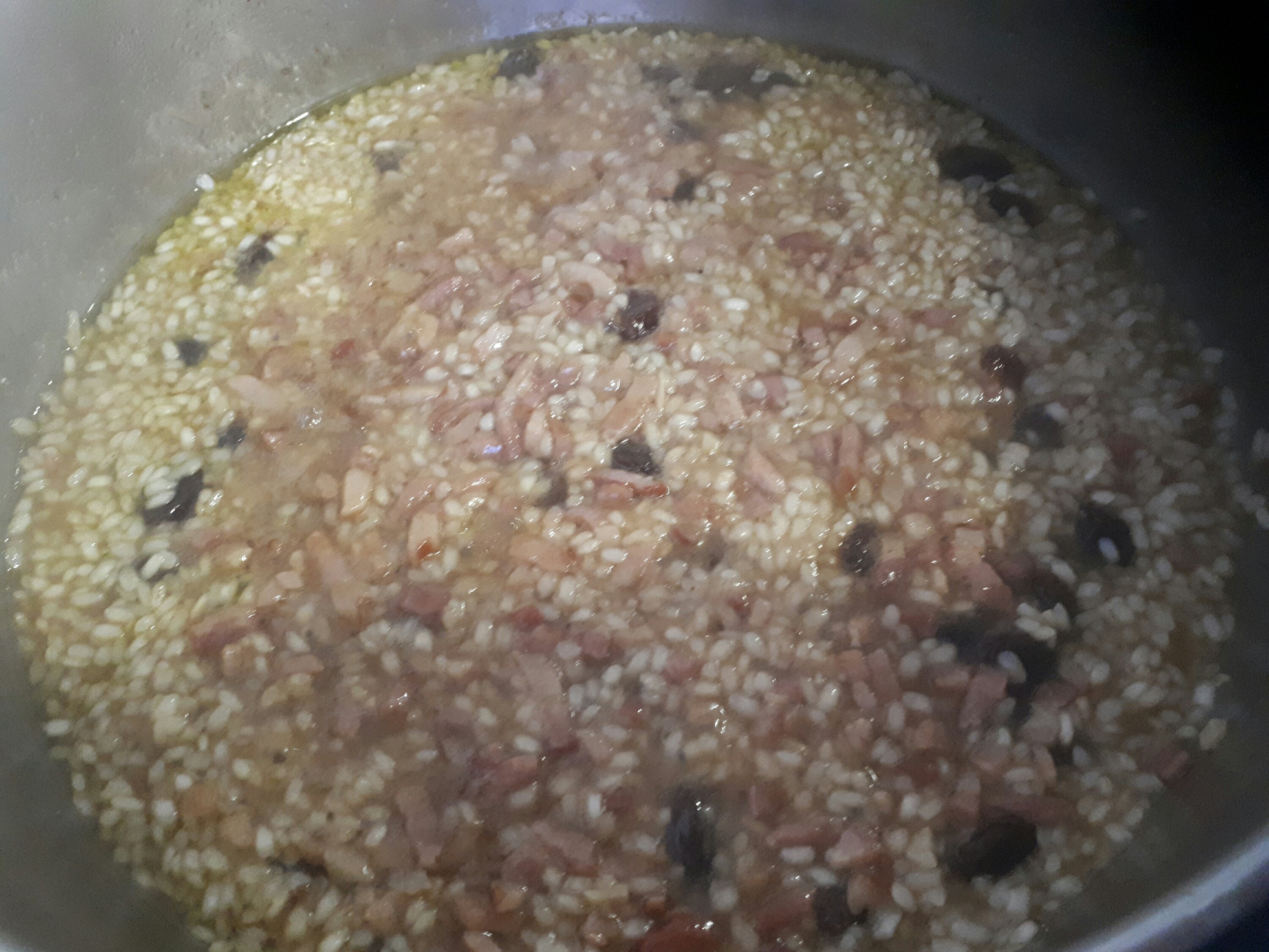 El refrito lo he hecho como me aconsejo: ajito, beicon y pasas!