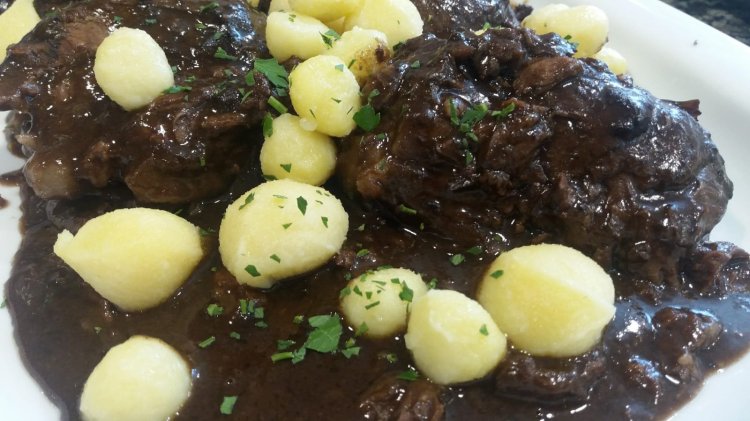Colocar en una olla las carrilleras, cubrir con el caldo de verduras y cocer hasta que estén tiernas y se desprendan del hueso. En este punto de la carne, añadir sal, pimienta negra y chocolate. La cantidad dependerá del gusto personal. Dejaremos cocer unos minutos todos los ingredientes. Finalmente, retiramos el hueso de las carrilleras con la ayuda de una cuchara. Podemos acompañarlas de mil formas; la guarnición es muy amplia. En esta ocasión he optado por ñoquis; unos rellenos de gorgonzola y los otros sencillos.