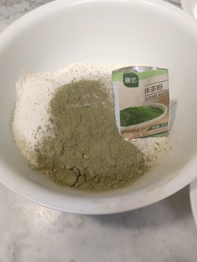 Add the Matcha tea and flour (previously passed through the sieve) at the same time and mix it with a rubber spatula.