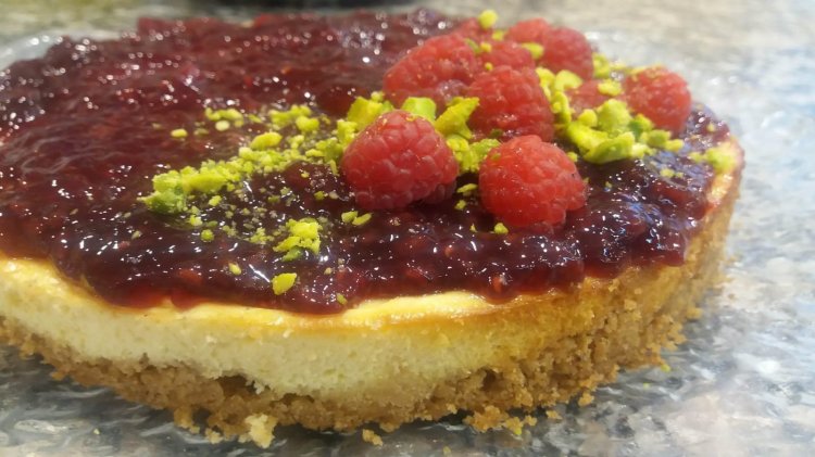 Triturar las galletas con la mantequilla y cubrir la base del molde. A parte batir los huevos con el azúcar y mezclar con la philadelphia. Cocer a 180 grados unos 15 minutos. Cubrir con mermelada de fresa.
