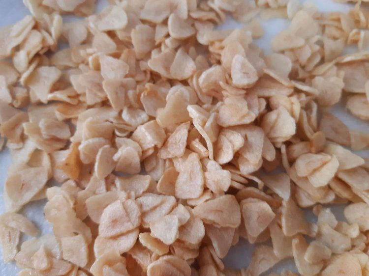 Otra opcion para decorar platos y darle este toque de sabor es hacer polvo de ajo. Una vez seco triturar y hacer polvo. Potencia mucho el sabor en los platos.