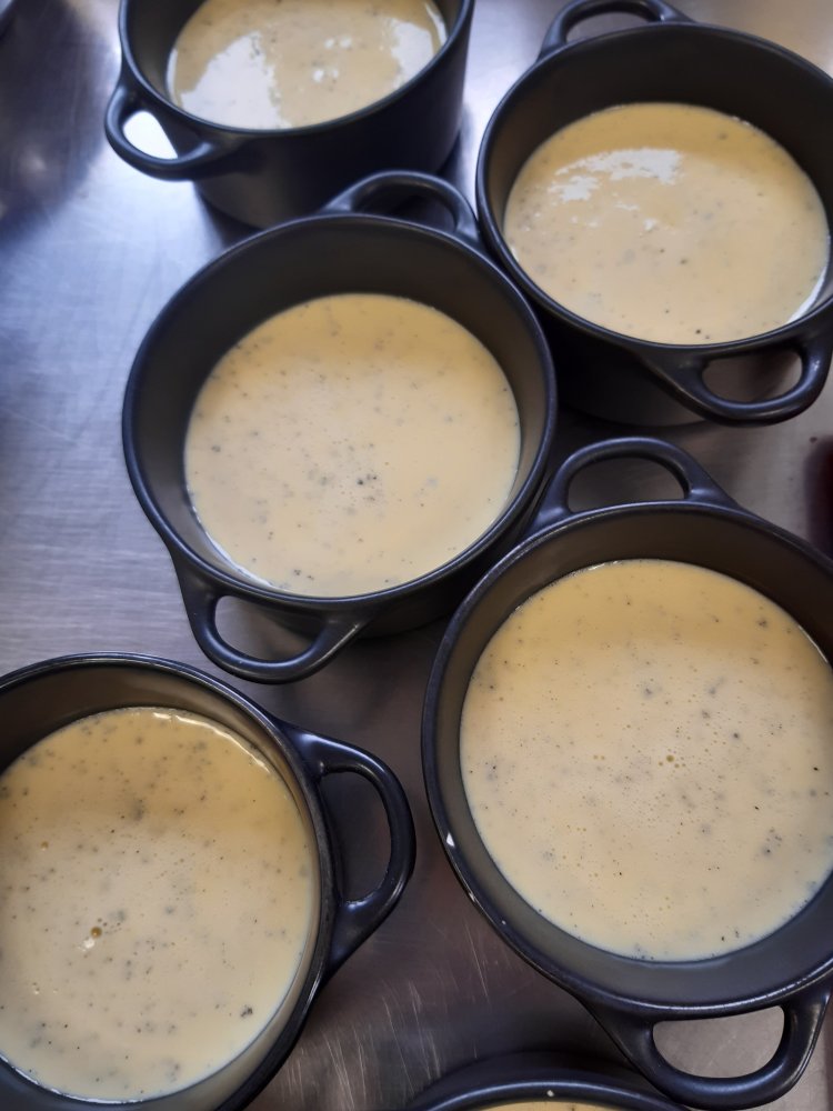 Ponemos los recipientes sore una bandeja de horno al baño maría y metemos en el horno durante 45 minutos.