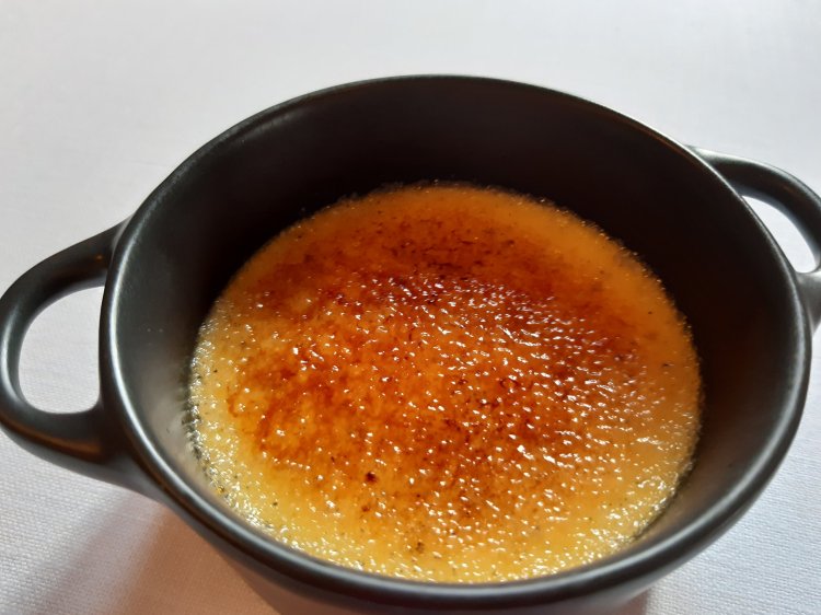 A la hora de servir: espolvoreamos azúcar y quemamos con un soplete.