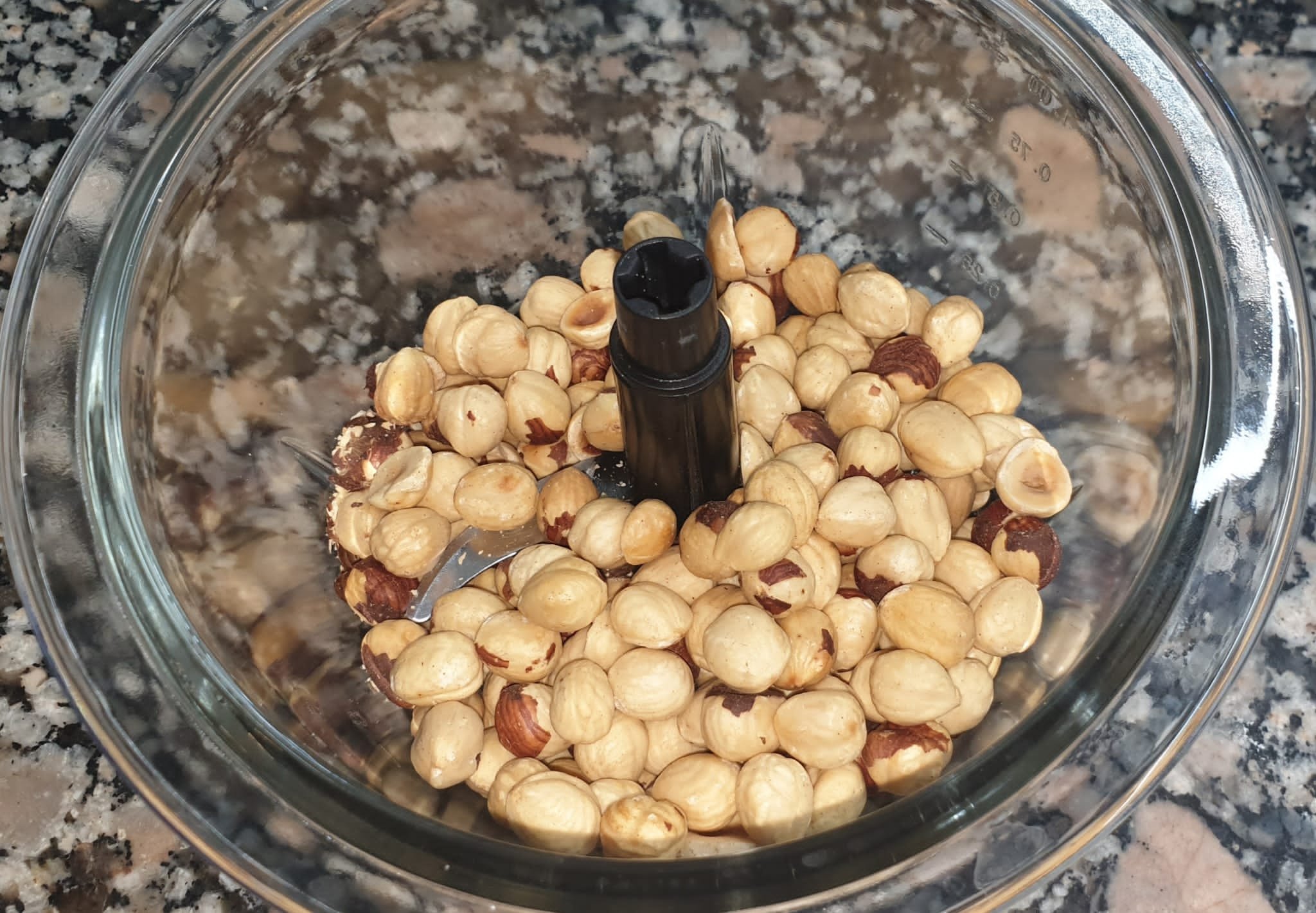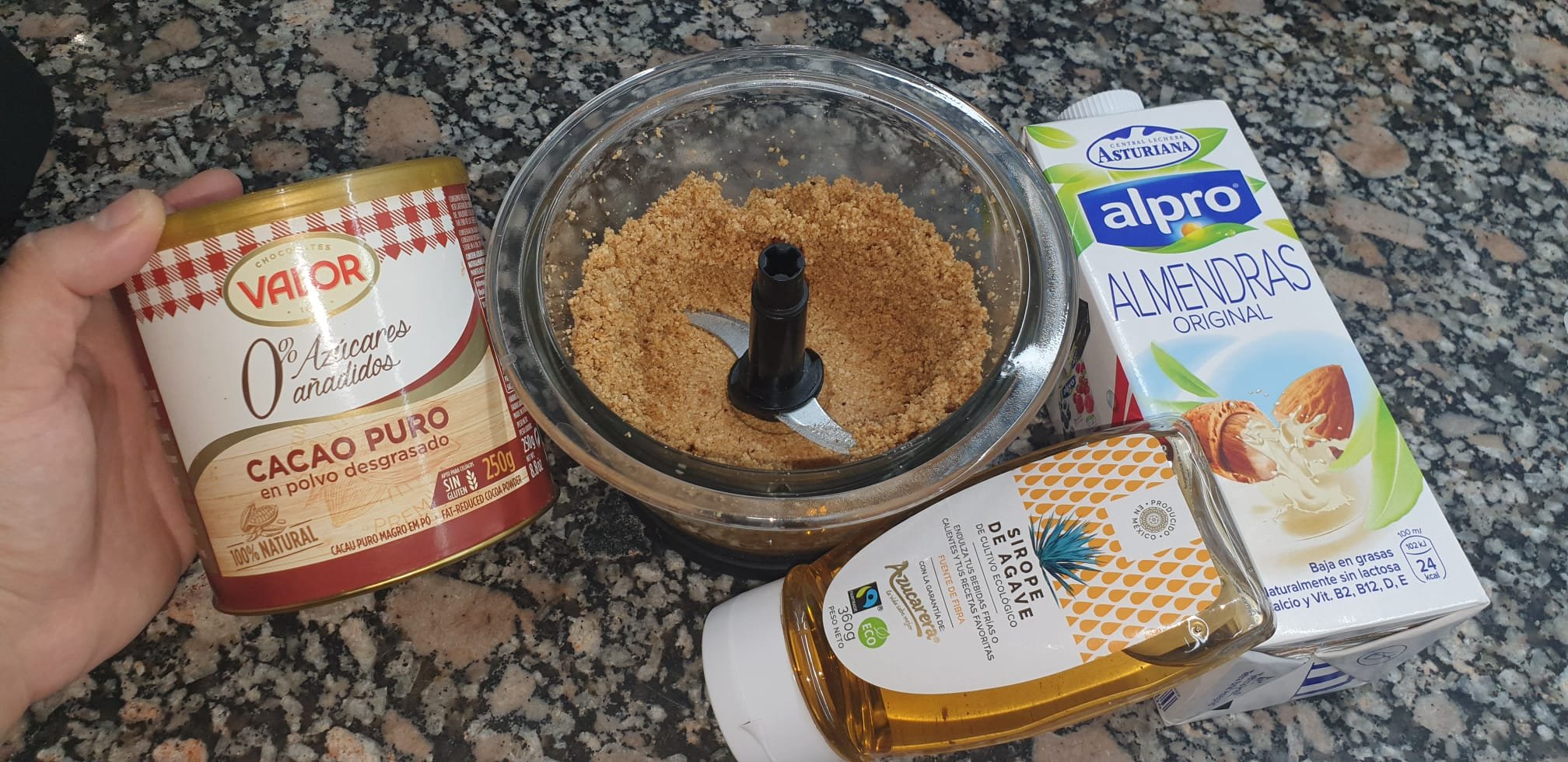 • 150gr Avellana tostada y pelada 75gr cacao Cs sirope agave o edulcorante 50gr bebida almendra o leche desnatada