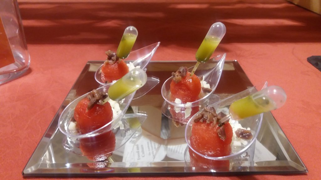 Un sugerente y vistoso bocado de aperitivo que puedes presentar de formas muy variadas combinando sus ingredientes. INGREDIENTES Sandía Mozzarella Anchoa Aceite Albahaca Emulsionaremos el aceite y la albahaca y rellenaremos las pipetas. Reservar. Por otro lado, haremos con la ayuda de un sacabolas, semiesferas de sandía. Cortaremos las anchoas finamente y montaremos en laSigue leyendo «Cucharilla de sandía, mozzarella, anchoa y albahaca»