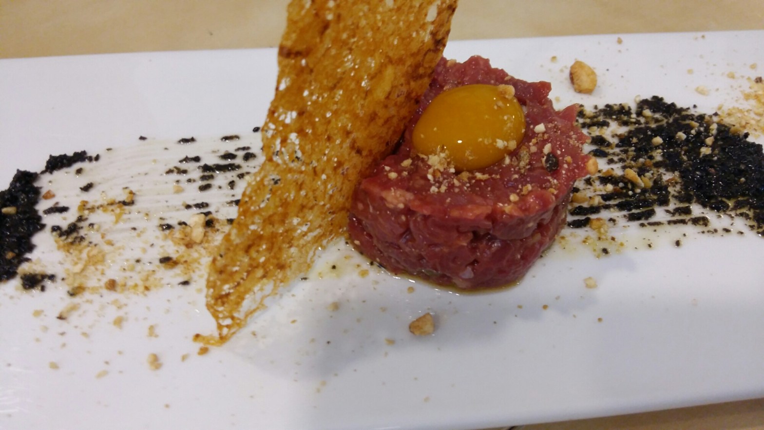Esta receta es difícil de conseguir en condiciones, la aprendí en un curso donde nos quedó muy claro que exige mucha precaución, mucha higiene. Eso sí, es una delicia para los amantes de la carne. Ingredientes 150gr solomillo 5 gr cebolleta 5 gr pepino 5 gr alcaparra 5 gr polvo de kikos muy triturado 1Sigue leyendo «Steak tartar de la sierra con crujiente de patatas revolconas»